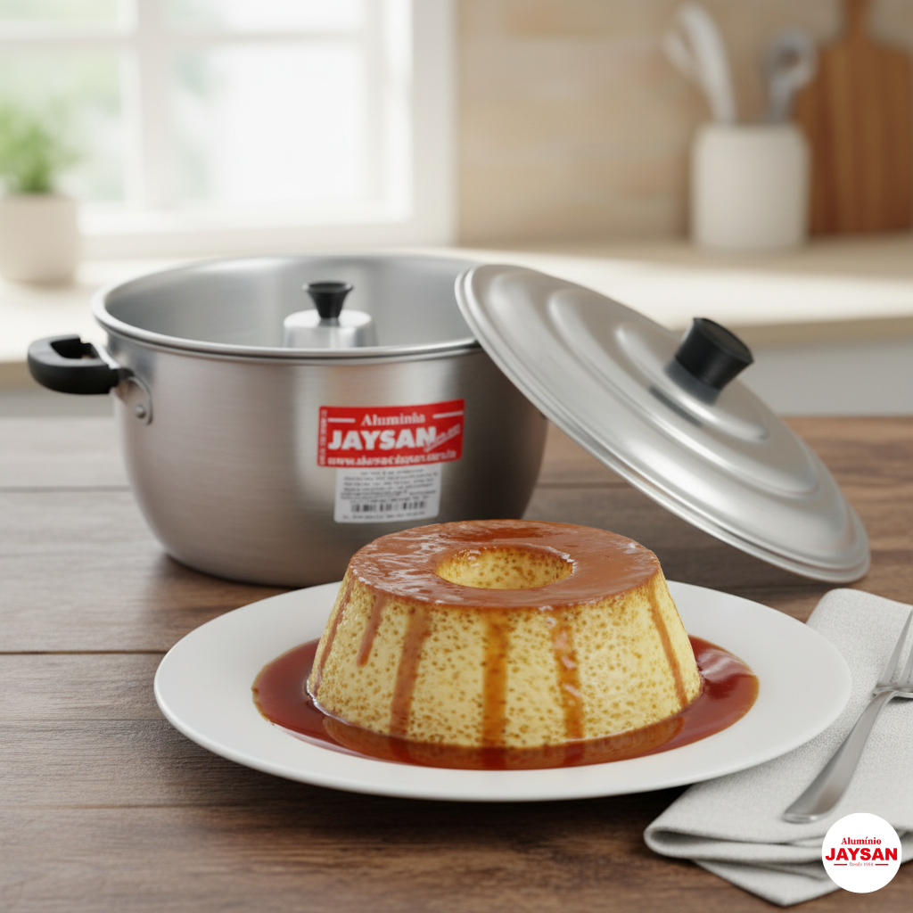 A Forma Panela  é fabricada com alto padrão de qualidade em alumínio, garantindo uma experiência única na cozinha. Este material proporciona uma excelente condução de calor, essencial para o preparo de legumes, pudins e outras delícias.